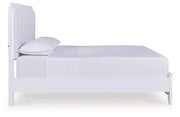 This California king upholstered panel bed is a showstopper, bringing a touch of modern glamour to your sanctuary. A sleek white finish, paired with the cushioned headboard’s off-white fabric with metallic silver accent threads, creates a sophisticated feel. Built-in LED lighting adds a soft glow, making it even easier to get ready in the morning or wind down at night. It’s a simply stunning way to achieve the bedroom of your dreams.