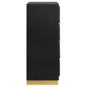 Modern luxury with a minimalist look offers a perfect fit for updated bedrooms as the four-drawer chest enhances a sleek master suite or guest bedroom. Wood and wood products construct a dresser with clean lines and a stylish Mid-Century Modern vibe. This chest offers simplicity with sleek elegance, as accents include straight drawer handles and a matching base. Spacious drawers operate smoothly on center drawer glides. Choose this chest for its versatility and convenience, accompanying either matching or coordinating pieces to pull a statement-making look together.