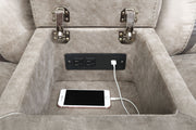 Bring friends and family to watch the newest movie with this motion living room set. Pocket coil seating makes for an incredible seating experience along with padded armrests. Guests can keep drinks on hand by using the built-in cupholders. Find a convenient storage space for reading materials inside a pocket behind the drop-down table. This living room set with consoles keeps your living area organized and stylish.