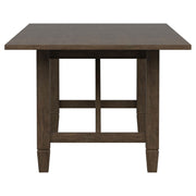 Introduce easy, inviting style with a nine-piece transitional dining set. Creating a perfect spot for family meals or entertaining, the set features a rectangular table crafted in Asian hardwoods that features an 18-inch extension leaf that offers additional seating for friends and family. A light neutral brown wood finish is perfect for a variety of kitchen and dining room settings, perfectly achieving a warm, inviting ambiance. Chairs are designed with airy rattan backs that add wonderful texture and dimension, while padded seats and beige upholstery are comfortable and stylish. The table adds trestle-inspired angular supports for a touch of compelling character.