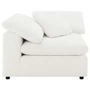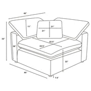 Design a custom configuration for your modular sectional with a modern corner chair. This foundational piece features neutral water-resistant boucle upholstery for an on-trend look and feel that works in a variety of homes and living spaces. The corner chair connects with armless chairs, creating an L-shaped bend or ending a straight section, creating a custom sectional setup in your living room. Foam cushions pair with feather blend for exceptional comfort and a plush feel you'll love when lounging. A loose pillow back with two full-sized pillows and an accent pillow completes the look.